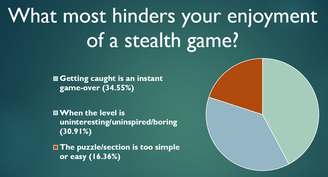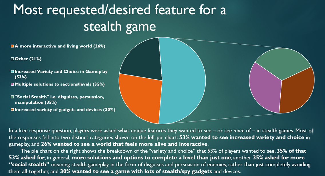 After creating our initial game idea, we conducted a series of surveys with people who fit our core audience. The focus of these surveys was to find out what our audience was looking for in a stealth game. Since stealth would be the core of our game, it seemed only logical to start there. The results of these surveys gave us a strong direction for our game. We knew what players would be looking for from a stealth/puzzler experience. So we got to work and quickly built a working prototype with all the desired elements.
