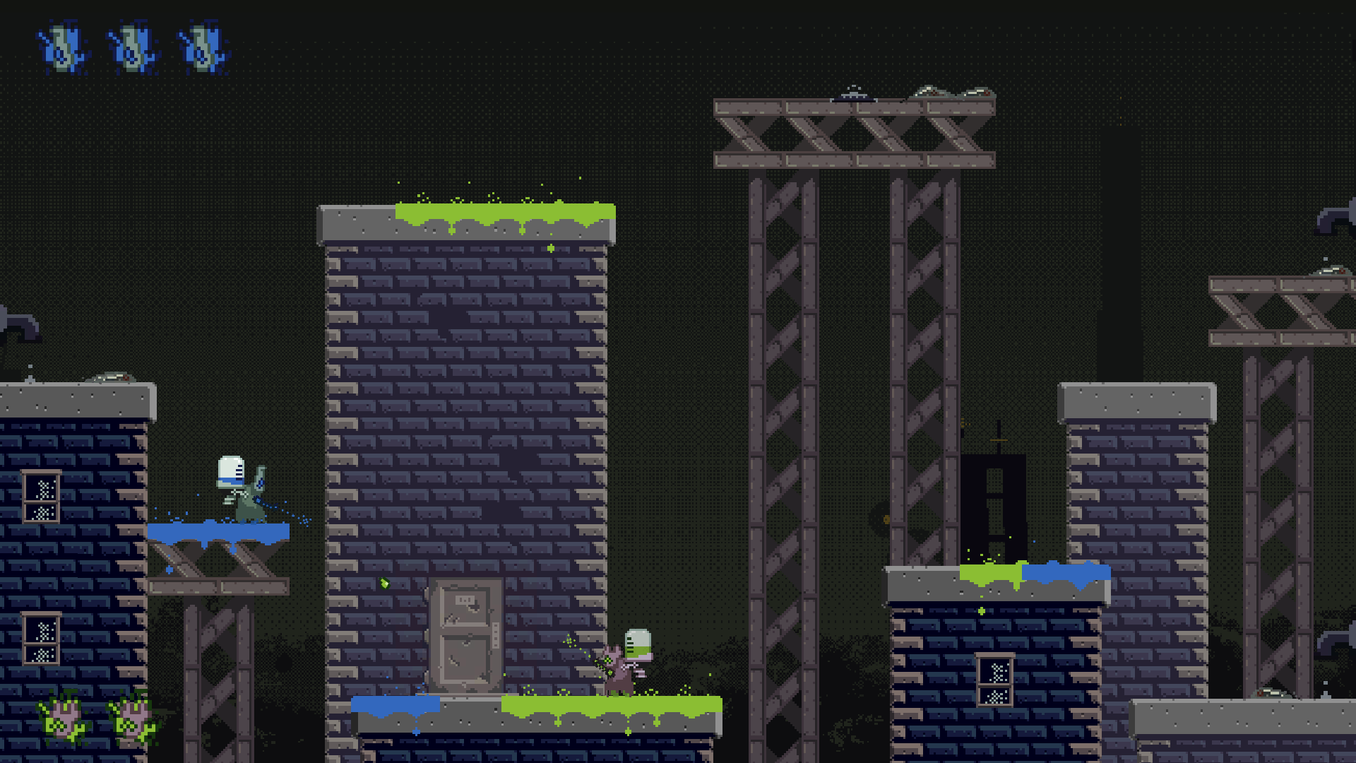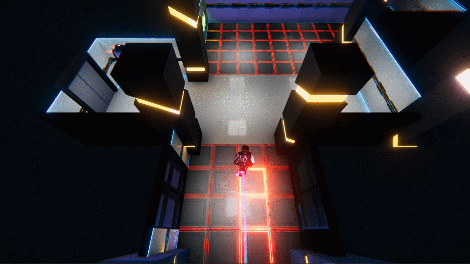 Here you can see our falling floor obstacles, as well as an attack drone, in action.