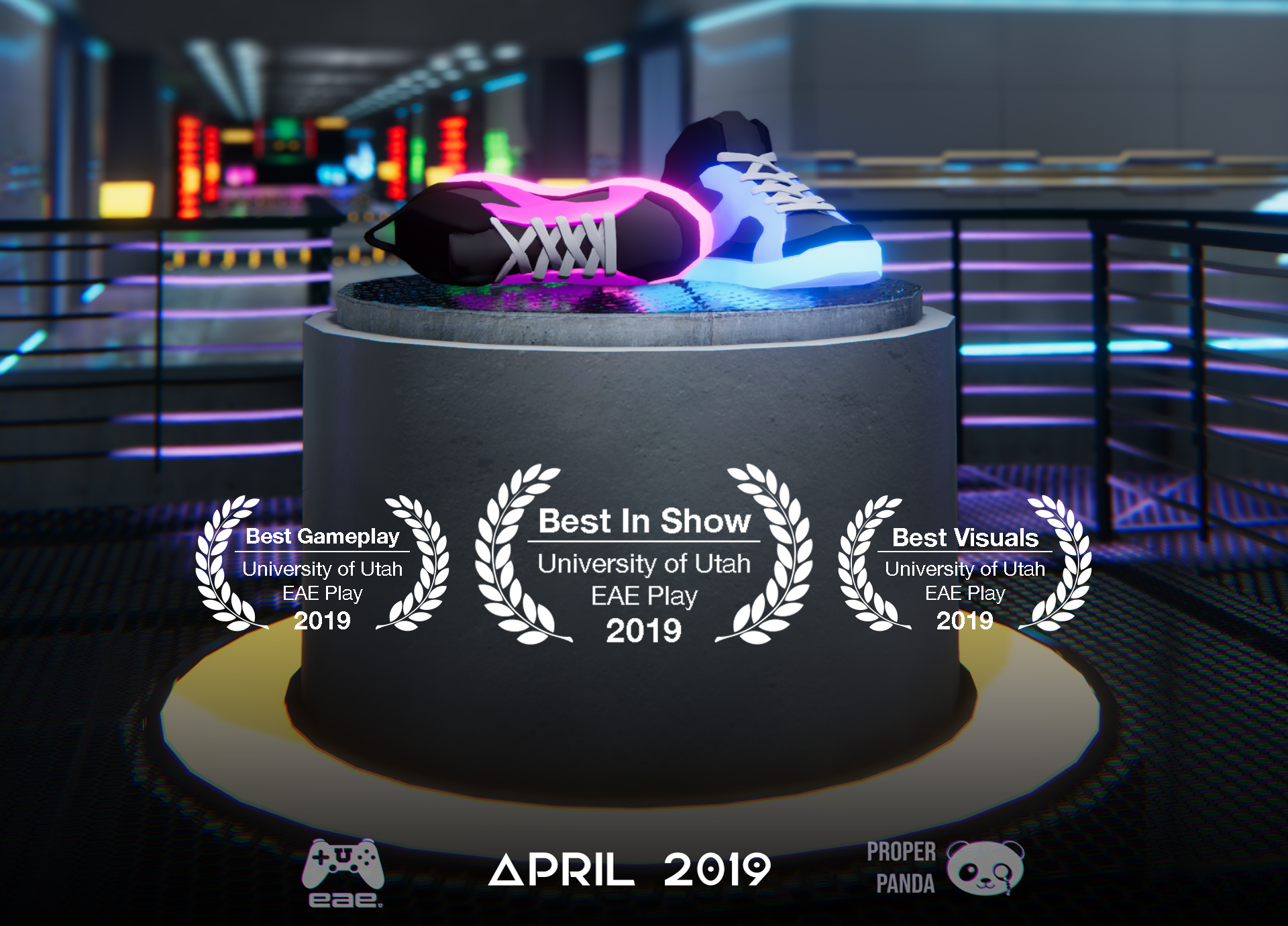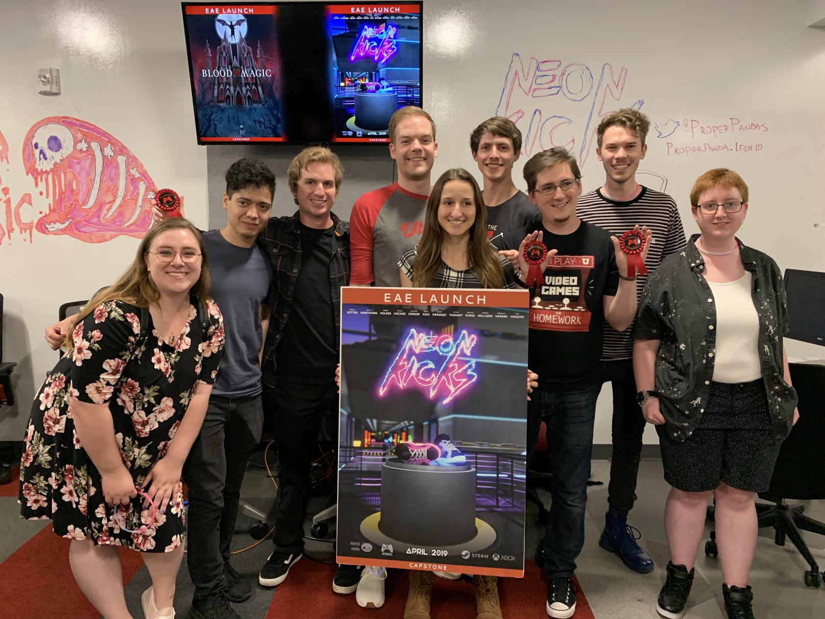 Every year the University of Utah holds an end-of-the-year where students from the EAE program show off their games. This includes both undergrad and graduate students. In 2019, the year we made Neon Kicks, the U of U invited industry professionals to come and judge the games. Our team ended up winning Best Gameplay, Best Visuals and Best In Show. We were all surprised that our undergrad game had impressed the judges, but we were gratified to know that our design choices paid off. I think we went out with a bang.